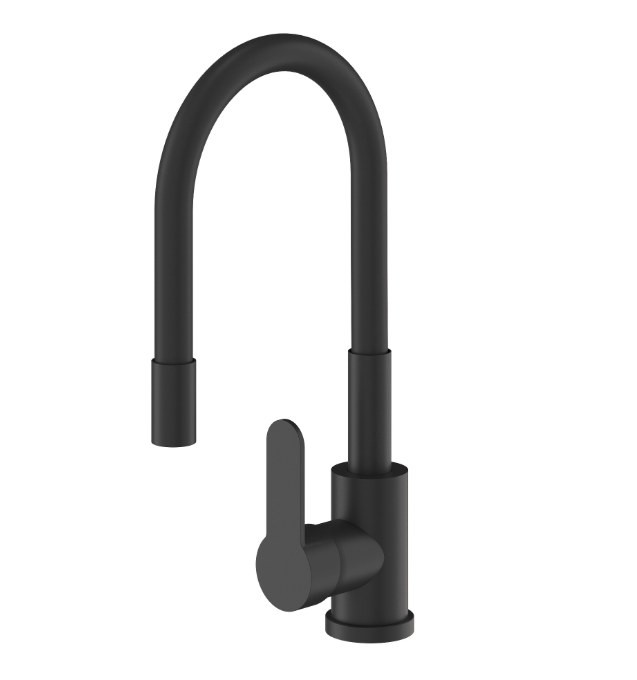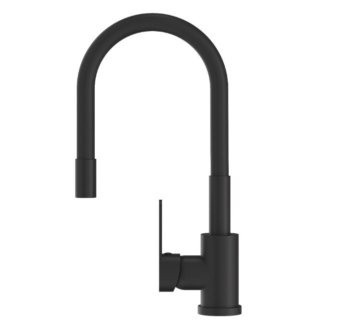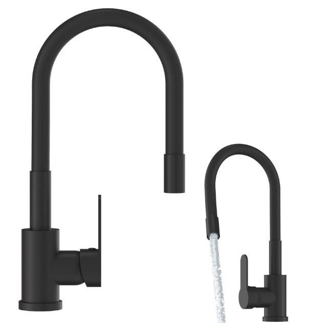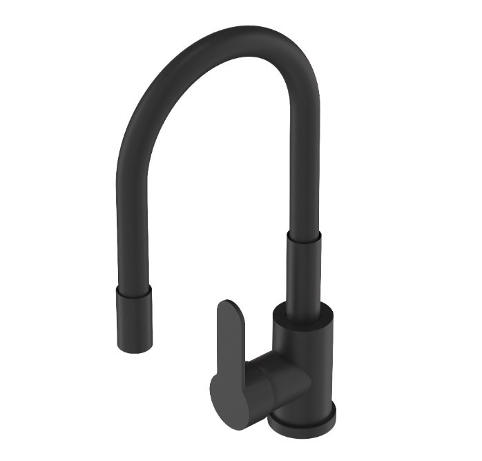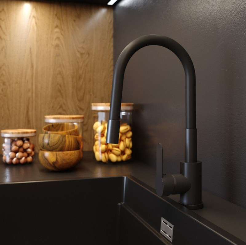 Čierna páková kuchynská batéria s flexibilným výtokovým ramenom