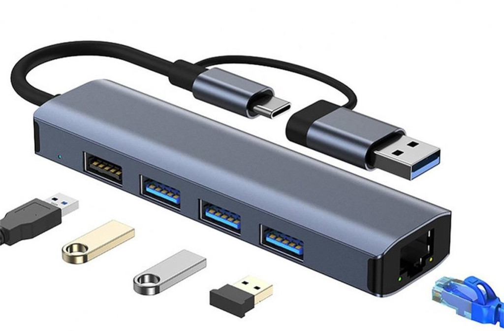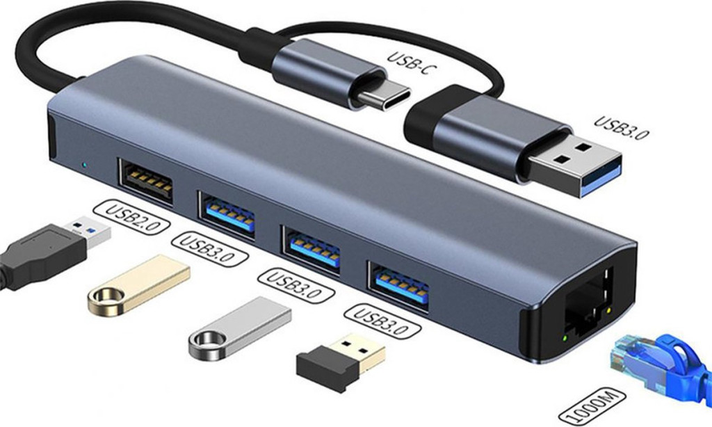 5-portový USB HUB - 3xUSB 3.0 1xUSB 2.0 1xEthernet RJ45