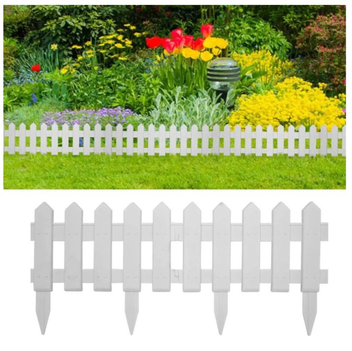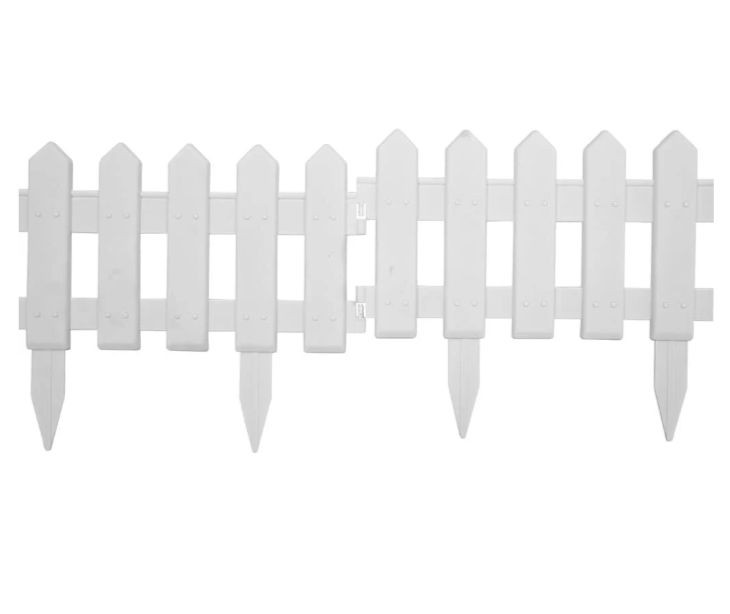 Sada 5-tich plastových záhradných obrubníkov vo tvare plotu v bielej farbe