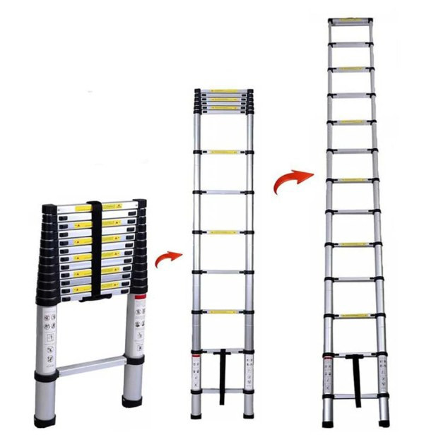 4,3 metrový skladací teleskopický kovový rebrík s 11 schodmi