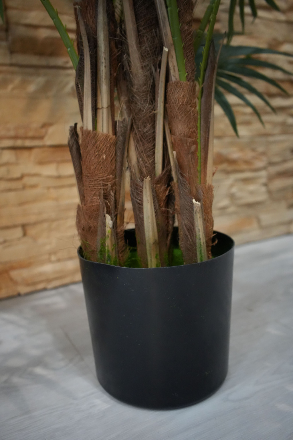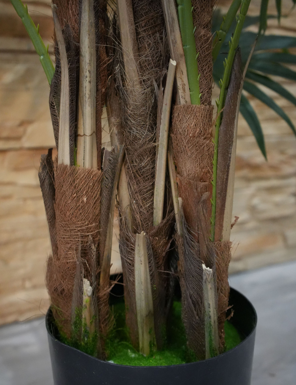 Listy umelej palmy sa podobajú listom skutočnej palmy a kmeň napodobňuje skutočnú farbu a štruktúru kmeňa.