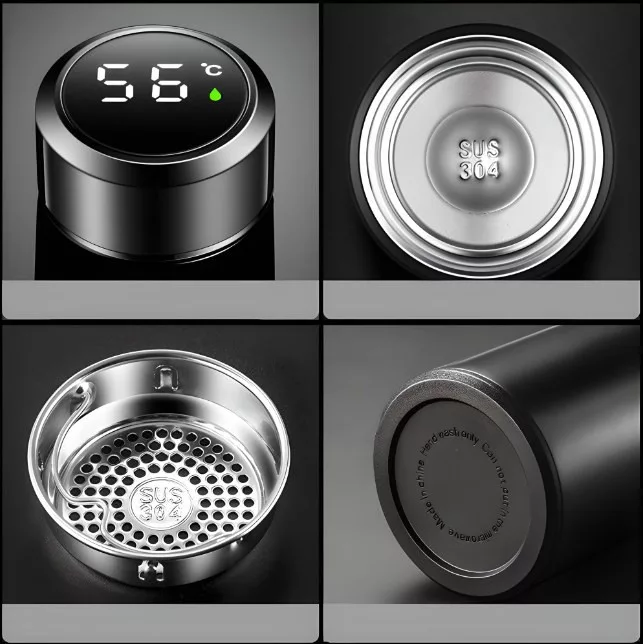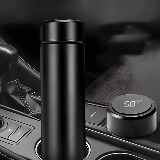 Termohrnček vyrobený z nehrdzavejúcej ocele a kvalitného plastu. Je vybavený LCD displejom, ktorý zobrazuje aktuálnu teplotu nápoja.